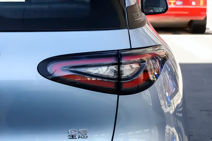 是吉利星愿的设计语言。星愿采用圆润温和的外观路线,整体比例更加协调,给人的第一印象是“温馨而亲和”。前脸封闭式中网与圆角多边形大灯组合形成微笑式视觉效果,三角形LED日行灯为前脸增加了一些年轻气息。下保险杠的装饰简洁,整体更偏向城市化、家庭化的氛围。车身侧面使用悬浮式车顶设计,车身线条柔和流畅,比例修长。相比悦也PLUS笔直的线条,星愿的侧面看起来更优雅,风阻表现也更好。车尾部分采用了小扰流板和水滴状尾灯,尾部造型与前脸相呼应,整体感较强。